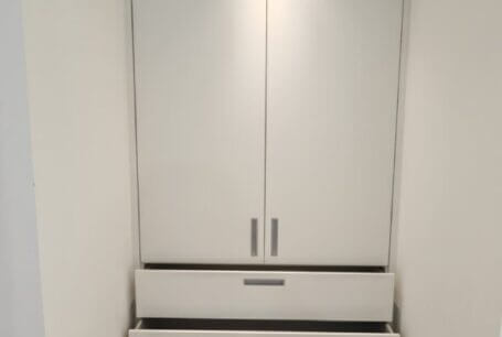 Alles ordentlich und sauber - dank unserer passgenau eingebauten Garderobe. Klasse!