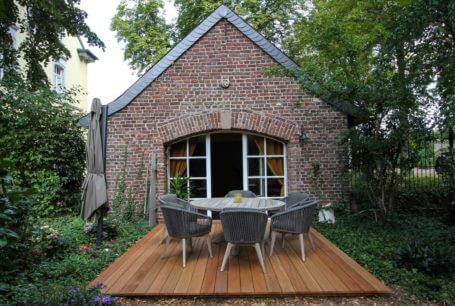 Mit dieser Terrasse haben wir das Anwesen um einen weiteren Wohlfühlplatz erweitert. Ein traumhaftes Ensemble aus Herrenhaus und ehemaligem Stallgebäude erstrahlt nach der Renovierung in neuem Glanz. Unsere Holzterrasse aus massivem Bangkirai fügt sich wunderschön in den Außenbereich ein und lädt bei schönem Wetter zum Verweilen ein, nicht nur im Sommer.